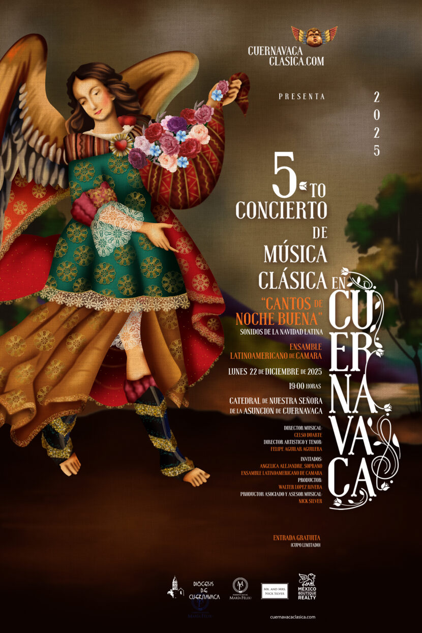 En esta quinta edición del Concierto Navideño de Cuernavaca Clásica, la música latinoamericana toma el centro del escenario para ofrecer una velada única, profundamente arraigada en nuestras tradiciones. El programa incluye la Misa Latinoamericana, obra compuesta por Alfredo Montané de la Vega y estrenada en 1980 en Alemania por la cantante México-alemana Olivia Molina. Esta pieza, de gran valor cultural y musical, destaca por su recorrido a través de los ritmos folclóricos de América Latina —como el son, el guapango y otros géneros tradicionales— integrados con sensibilidad en la forma litúrgica de la misa. A más de cuatro décadas de su estreno, esta será la primera vez que se interpreta en México, haciendo de esta presentación un acontecimiento histórico. La misa se complementará con una cuidada selección de villancicos latinoamericanos, ofreciendo al público un recorrido sonoro cargado de identidad, color y espiritualidad. Así, en este diciembre de 2025, Cuernavaca Clásica rinde homenaje a la riqueza musical de nuestro continente, reafirmando su compromiso con la comunidad cuernavacense y con el arte como un acto de amor y encuentro.